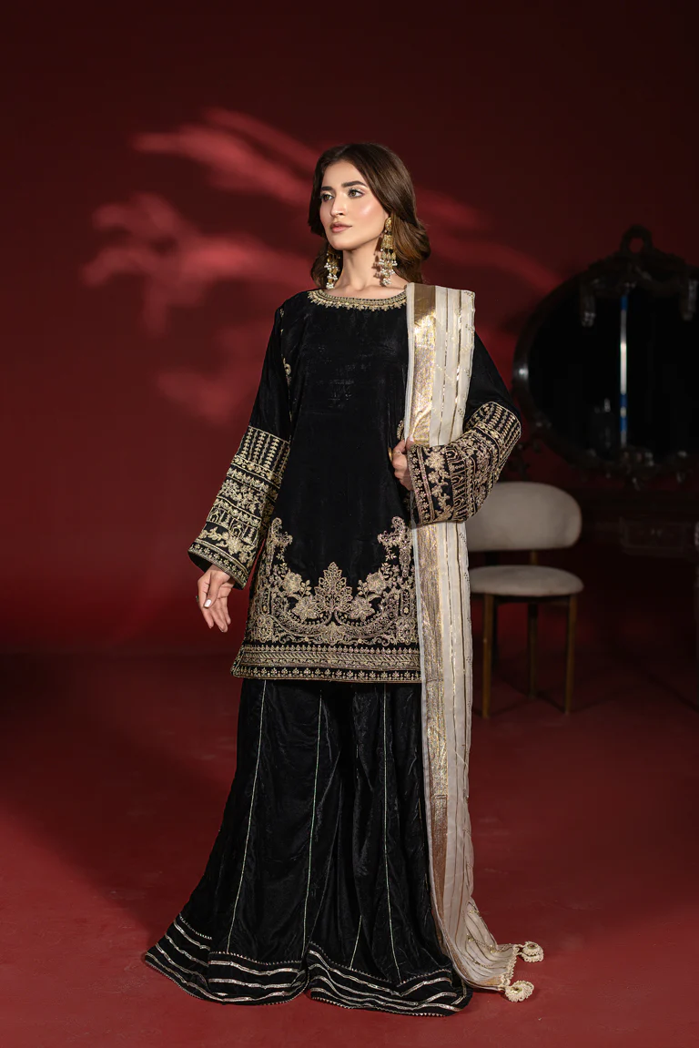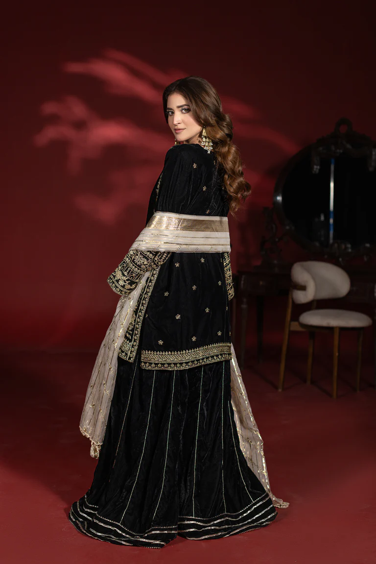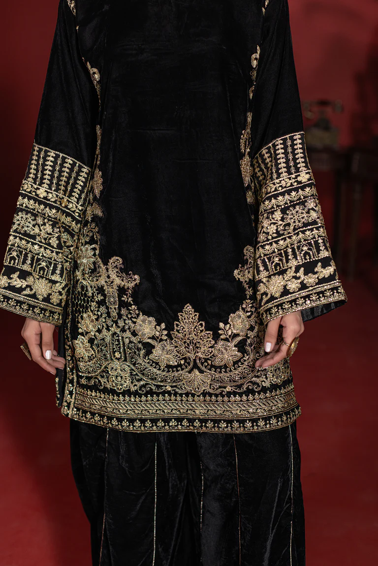 Haseena | Laiba -3Pc Midnight Black Velvet Festive Ensemble | Ready to wear
